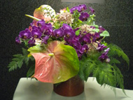 フレッシュな花とグリーンで、ボリュームたっぷりに華やかに個性的にアレンジします。