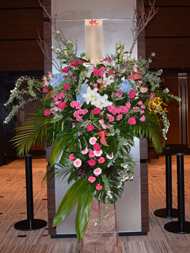 季節等により花材は変わります。その日新鮮なお花を使ってお作りします。花材のご指定がある場合は、スタッフまでご相談下さい。(一週間前まで)